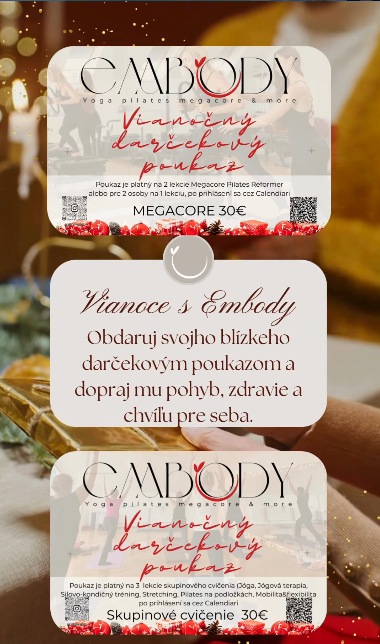 Poukazy sú dostupné od 1.12. v @embody.nitra, osobne alebo cez formulár.
